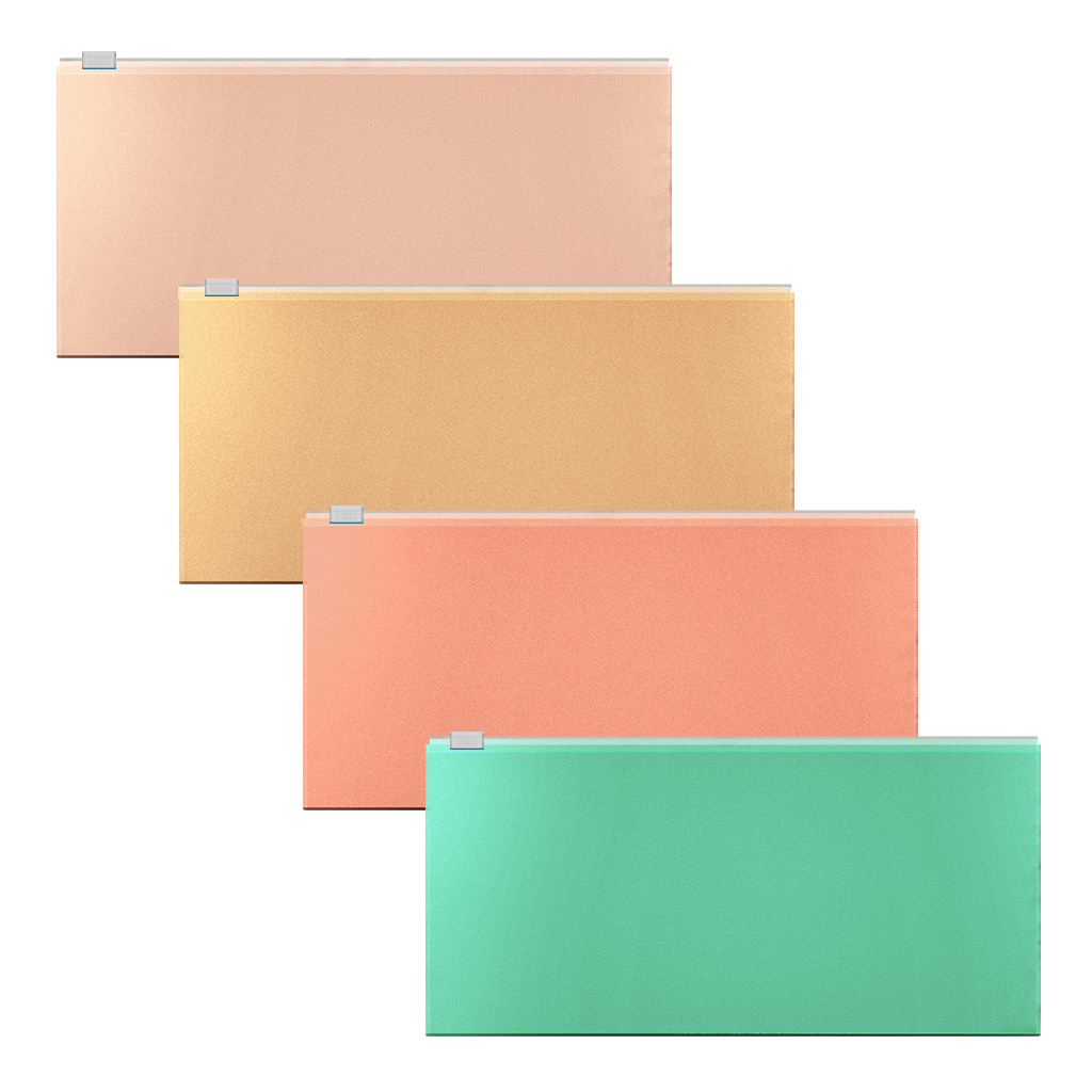 Симпатичные цвета, особенно яркие неоновые, замок типа zip lock открывается и закрывается плавно, вместительный формат, очень крепкие. Удобно хранить пазлы и другие мелочи.